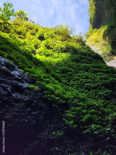 foliage, moss, indonesia, rock, adventure, travel, vacation, holiday, hiking, trekking, canyon, java, asia, landscape, nature, natural, water, sky, blue, green, environment, scenic, scenery