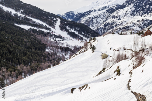 andorra, building, cold, landscape, mountain, nature, nobody, panoramic, peak, resort, season, seasonal, ski, slope, snow, top, travel, vacation, view, village, white, winter