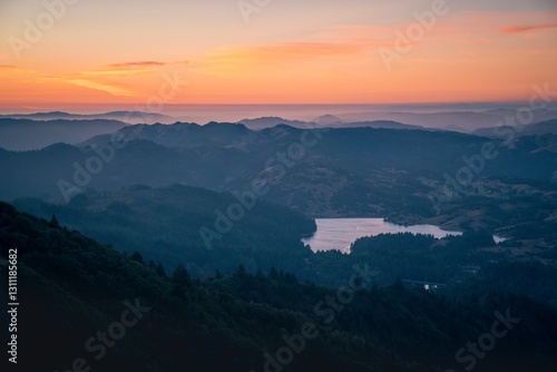 sunset, hill, lake, landscape, tranquil, scenic, vibrant, sky, serene, nature, outdoors, peaceful, evening, dusk, horizon, view, countryside, twilight, colours, california, us, wilderness, scenery, calm, beauty, travel, exploration, adventure
