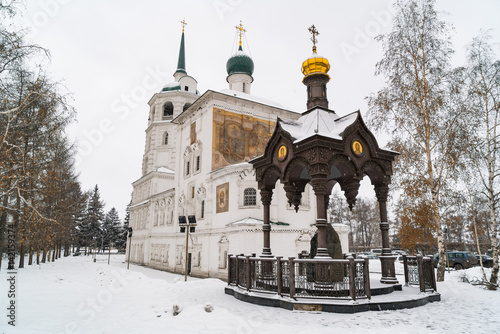 architecture, baroque, beautiful, building, cathedral, chapels, jesus christ, christianity, city, cold, cross, cupola, day, dome, exterior, famous, federation, green, historic, historical, history, ice, icon, landmark, location, old, orthodox, place, religion, religious, russia, saint, saviour, scene, scenery, scenic, siberia, sky, snow, snowing, street, temple, tower, travel, tree, view, white, winter
