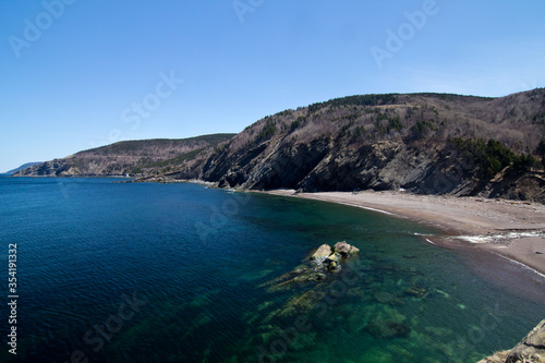 sea, water, landscape, beach, coast, sky, blue, island, nature, ocean, travel, coastline, summer, bay, mountain, lake, mediterranean, green, cliff, view, beautiful, shore, sand, scenic, meat, cove, nova scotia, cape, canada