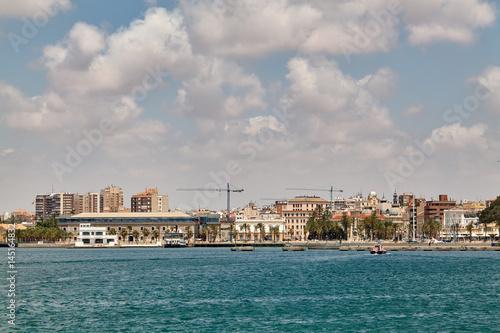 View of the embankment and the historic center of Cartagena from the Mediterranean Sea. Murcia, Spain.