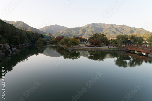 south korea, korea, blue, scenic, autumn, scenery, travel, forest, river, mountain, sky, nature, water, landscape, mountain, lake