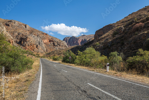 armenia, highland, road, serpentine, mount, mountain, autumn, tour tourism, nature, natural, landscape, scene, scenery, massif, range, traveling, travel, panorama, panoramic, view, red, stone, rock, cliff, gorge, ravine, blue, sky, october