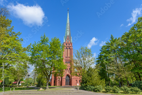 View of the Ohmsteder Kirche, Oldenburg, Germany. Copy space for text.