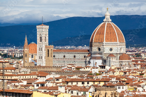 View of the Renaissance Duomo from Piazzale Michelangelo in the city of Firenze Florence, Italy.
