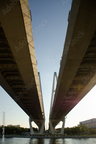 modern, way, travel, elevated, vertical, petersburg, design, metal, technology, blue skies, river, landmark, steel, below, highway, bottom, concrete, sea, day, infrastructure, transit, urban, line, tour tourism, city, futuristic, support, building, strong, construction, long, girder, background, column, transport, traffic, pillar, perspective, structure, industrial, connect, big, road
