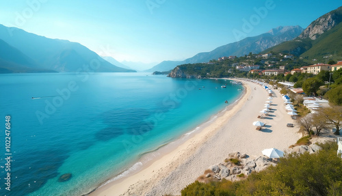 View of the Velika Plaza beach in Montenegro during a sunny day