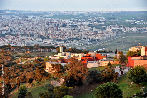 city, view, panorama, landscape, town, travel, architecture, panoramic, hill, urban, aerial, city landscape, summer, sea, green, sky, old, blue, building, house, mountain, nature, tour tourism, morocco