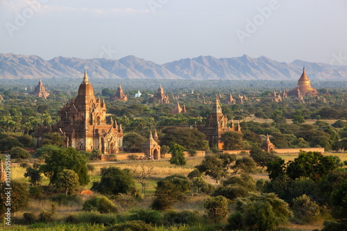 View over ancient temples from Shwesandaw temple, Bagan (Pagan), Central Myanmar