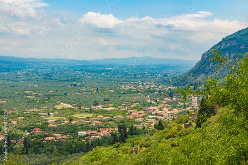 View to the valley from old byzantine medieval town Mystras, Peloponesse, Greece