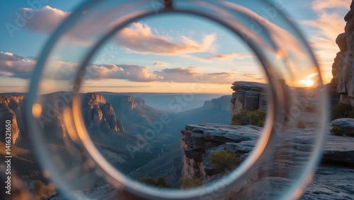 Viewing Canyon Through a Glass Circle During Sunset in Nature