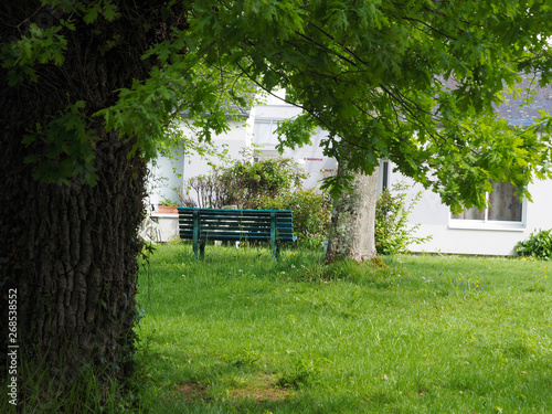 bench, park, garden, nature, shaft, green, grass, forest, seat, outside, summer, landscape, relax, chair, forest, person, autumn, blank, spring, rest, village, sported