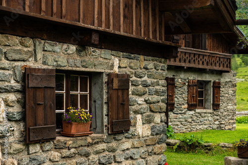 Village in the valley, chalet de miage, in the Alps, France (Tour du Mont Blanc)