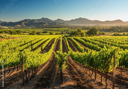 vinery, grape, wine, winery, vinification, agriculture, farming, rural, landscape, nature, countryside, green, hill, mountain, sunset, sun, golden hour, sky, blue, field, row, vine, foliage, growth, organic, harvest, vine-growing, wine country, california, napa valley, wine tasting, grapevine, grape harvest, wine cellar, wine bar, wine glass, wine bottle