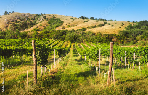 vinery, wine, grape, grapevine, hill, green, field, day, sunny, rural, row, nobody, plant, agriculture, austria, bush, column, countryside, europa, grass, growth, land, landscape, leaf, nature, clear, scenic, season, sky, stake, summer, tree, under, vale, autumn, fall
