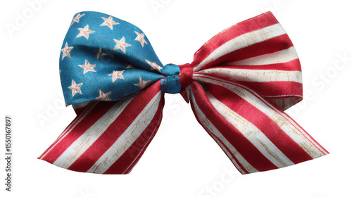 Vintage american flag ribbon bow isolated on transparent background