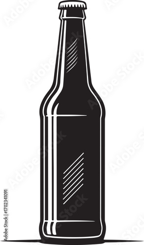 Vintage Beer Bottle Vector Illustration, Retro Beverage Container, Classic Glass Bottle Drawing, Etching Style Design
