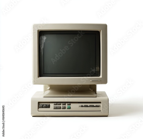 monitor, computer, beige, vintage, retro, old, technology, display, screen, desktop, personal, computing, hardware, electronic, 80s, 90s, obsolete, antique, classic, machinery, pixel, grey, dark, light, front, isolated, studio, still, image, object, white, background, front view, electronic device, contraption, tech, pixelated, system, datum, information, digital