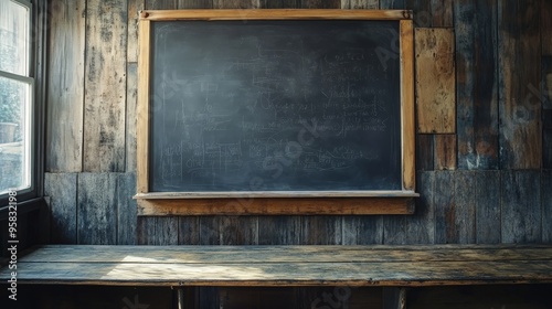 Vintage Blank Chalkboard with Faint Chalk Marks on Rustic Wall