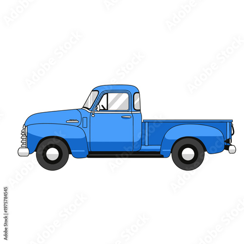 blue, truck, vintage, vehicle, pickup, classic, car, retro, transport, automotive, illustration, old-timer, antique, side, profile, transportation, motor, collectable, custom, farm, workhorse, road, trip, travel, hauling, delivery, cargo, design, nostalgia, art, graphic, element, isolated, object, digital, simple, clean, line, bright, colours, sky, icon, automobile, style, hard-wearing, utility, bed, driver, cabin