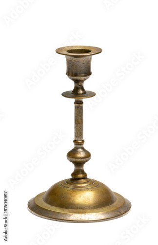 Vintage Brass Candlestick Holder on White Background