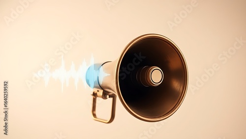 decibel, amplification, megaphone, brass, voice, studio, announcement, historic, retro, gradient, visualisation, object, sound, vintage, conceptual, equipment, public, wave, instrument, metal, isolated, noise, symbol, communication, design