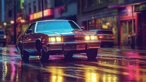charme, city street, city landscape, classic, colourful, cruising, dynamic, headlamp, light, motion, night, nostalgic, reflections, retro, urban, urban life, vibrant, vintage car
