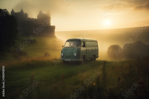 van, delivery, mist, foggy, old, vintage, car, winter, castle, ruin, snow, sunset, gold, history, historical, america, restore, pickup, hot, american, drive, 40s, vehicle, background, past, road, style, bumper, headlamp, 50s, fender, grill, sepia, classic, chrome, show, hood, stylish, transportation, auto, antique, grille, look, metal, truck, retro, engine, automobile, sky
