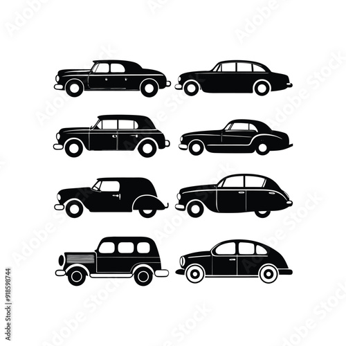Vintage Car set Silhouette Vector Illustration on white background 1
