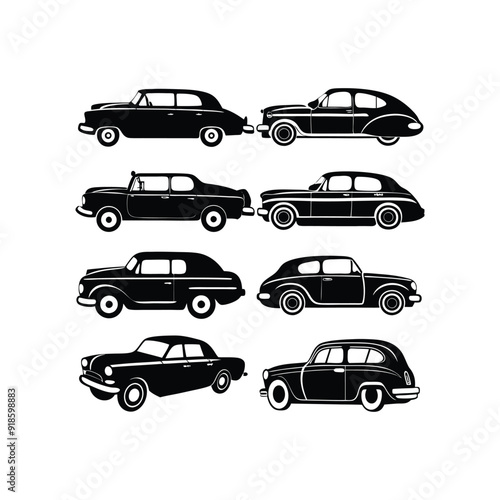 Vintage Car set Silhouette Vector Illustration on white background 1