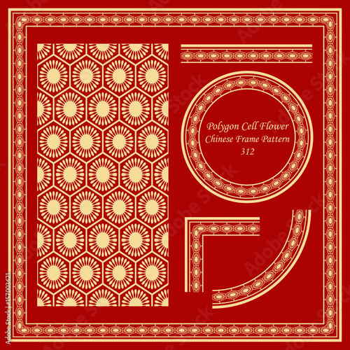 Vintage Chinese Frame Pattern Set polygon cell round flower