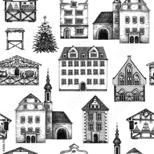christmas, architecture, vignetting, seamless, pattern, architectural, background, black, building, city, construction, decor, decoration, decorative, design, drawing, europa, european, graphic, hall, hand-drawn, heritage, historic, historical, holiday, home, house, illustration, landscape, market, mediaeval, merry, new year, old, outline, print, street, textile, texture, town, tree, urban, vector, vintage, window, winter, wrapping paper