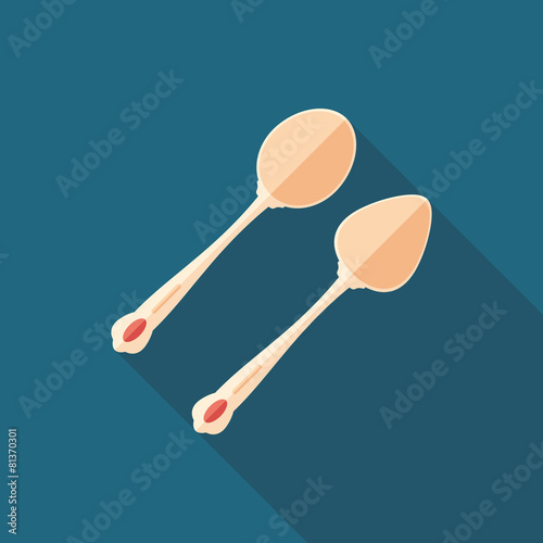 Vintage collectibles spoons flat square icon with long shadows.