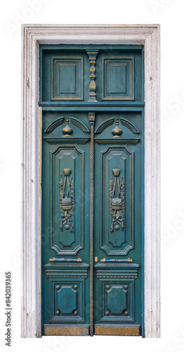door, old, wooden, antique, rough, green, blue, isolated, white, background, retro, board, structure, dirty, grunge, texture, design, aged, gate, ancient, style, detail, exterior, brown, wood, architecture, entrance, house, closed, home, vintage
