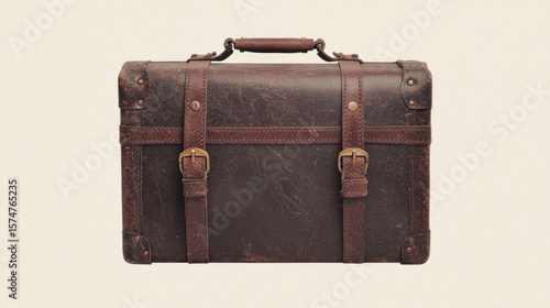 Vintage dark brown leather suitcase with dual buckle straps and a top handle, showcasing a classic, rugged design ideal for travel or storage.