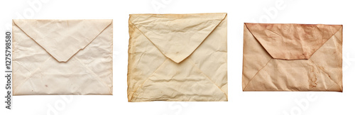 Vintage Envelope Collection with Various Textures Isolated on transparent background