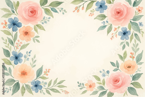 Vintage floral background with romantic pink roses, elegant frame, and decorative hearts for a wedding or Valentine's Day card design