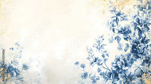 distressed, vintage, french, blue, floral, print, soft, white, background, intricate, gold, accent, subtile, fading, effect, corroded, vanished, power, illustration