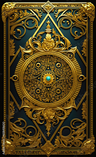 gold, shield, vintage, emblem, tarot, card, game, back, illustration, crown, label, retro, signs, antique, art, ornament, ribbon, business, frame, logotype, ornate, badge, graphic, heraldic, luxury, modern, classic, crest, elegant, king, template, arm, award, border, brand, coat, collection, glossy, heraldry, insignia, letter, medal, nobility, premium, generative, ai