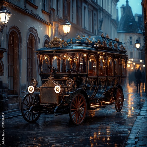 vintage, carriage, horse, urban, street, rain, night, light, architecture, travel, nostalgia, transport, historical, city, vehicle, old-fashioned, shiny, cobbled, atmosphere, dark, wet, illuminated, retro, scenery, sightseeing, romance, history, elegance, adventure, scenic, culture, journey, antique, charme, sepia, emotion, artistry, background, detail, landscape, beauty, seasonal, mood, fantasy, picturesque