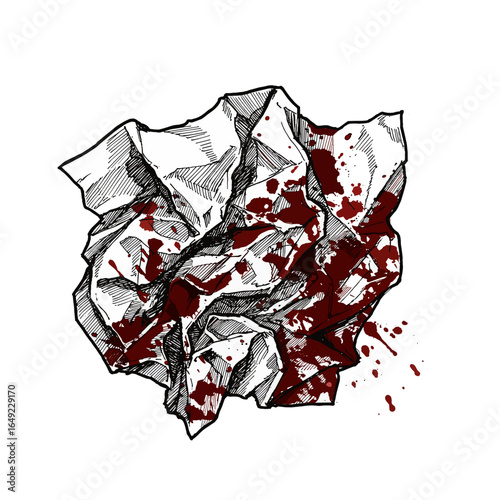 paper, crumpled, blood, halloween, decoration, vintage, engraving, black-and-white, vignetting, vector, illustration, scarey, horror, prop, stained, hand-drawn, outline, dark, creepy, eerie, event, skittish, textured, art