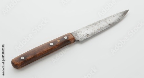 knife, metal, blade, handle, wood, vintage, tool, utensil, isolated, grey, brown, object, detail, equipment, background, white, image, top, view, product, design, antique, old, handcraft, closeup, display, photo, kitchen, metalwork, carpenter's shop, aged, worn, grayish, brownish, wood grain, light, simple