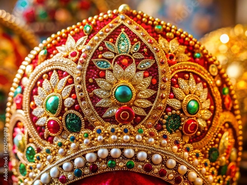 Vintage Kokoshnik Headpiece: Gold Thread Embroidery, Elegant Traditional Russian Fashion Design