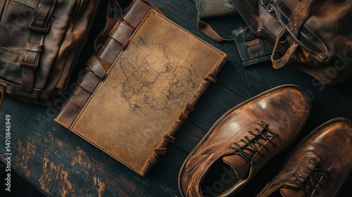 leather, accessory, vintage, shoe, backpack, fashion, style, rustic, craftsmanship, travel, bag, hand-made, brown, texture, design, detail, quality, material, classic, lifestyle, elegance, artistry, surface, arrangement, object, background, wood, warm, neutral, aesthetic, artisanal, collection, workspace, decor, casual attire, timeless, exploration, journey, adventure, heritage, unique, personal