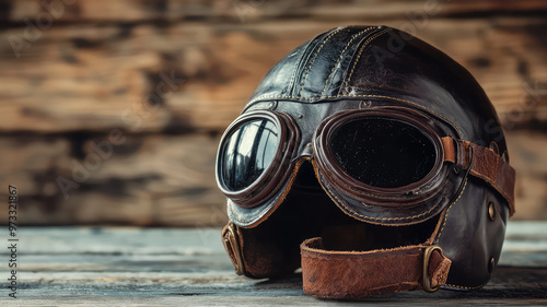 Vintage leather aviator helmet with goggles evokes sense of adventure and nostalgia