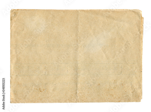 Vintage light paper blank with old spots isolated on white background. Paper texture for design.