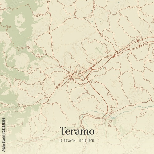 teramo, geography, italy, city, abruzzo, destination, poster, map, street, olive, art, atlas, satellite, topography, sepia, plan, city landscape, vintage, nostalgic, municipality, outline, street, stylish, metropolitan, europa, road, navigation, elegant, retro, aerial, design, transportation, illustration, heritage, serif, cartography, river, urban, forest, wood, dune, art deco