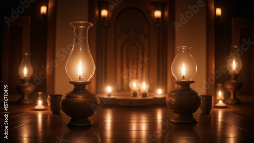 Vintage Oil Lamps and Candles Illuminate a Warm, Nostalgic Scene