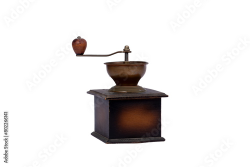 Vintage Old Coffee Grinder on White Background - Rustic Kitchen Appliance